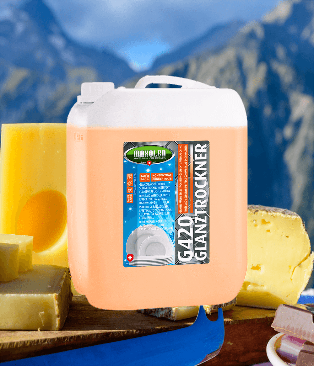 Nõudepesumasina kuivatusvahend loputusvahend läigestaja kirgastaja. Läike- ja kuivatusvedelik sobib kõikidele tööstuslikele masinatele köögis, sööklates, restoranides, hotellides ja kodumasinatele. Õrn ja säästlik nõude viimistlustele ning klaasnõudele. Tänu optimaalsele vahtu pärssivatele ja siduvatele ainete sisaldusele, saavutatakse kuivamise käigus automaatselt tilgavaba ja veekuivamisjälgedeta nõud. Sobib hästi ka keskmise või kõrge veekareduse puhul kasutamiseks. Optimaalsed tulemused saavutatakse koos G415 Dishwasher detergent nõudepesuvahendiga, millega kombinatsioonis on kahe aine vastastikune negatiivne toime välistatud.
