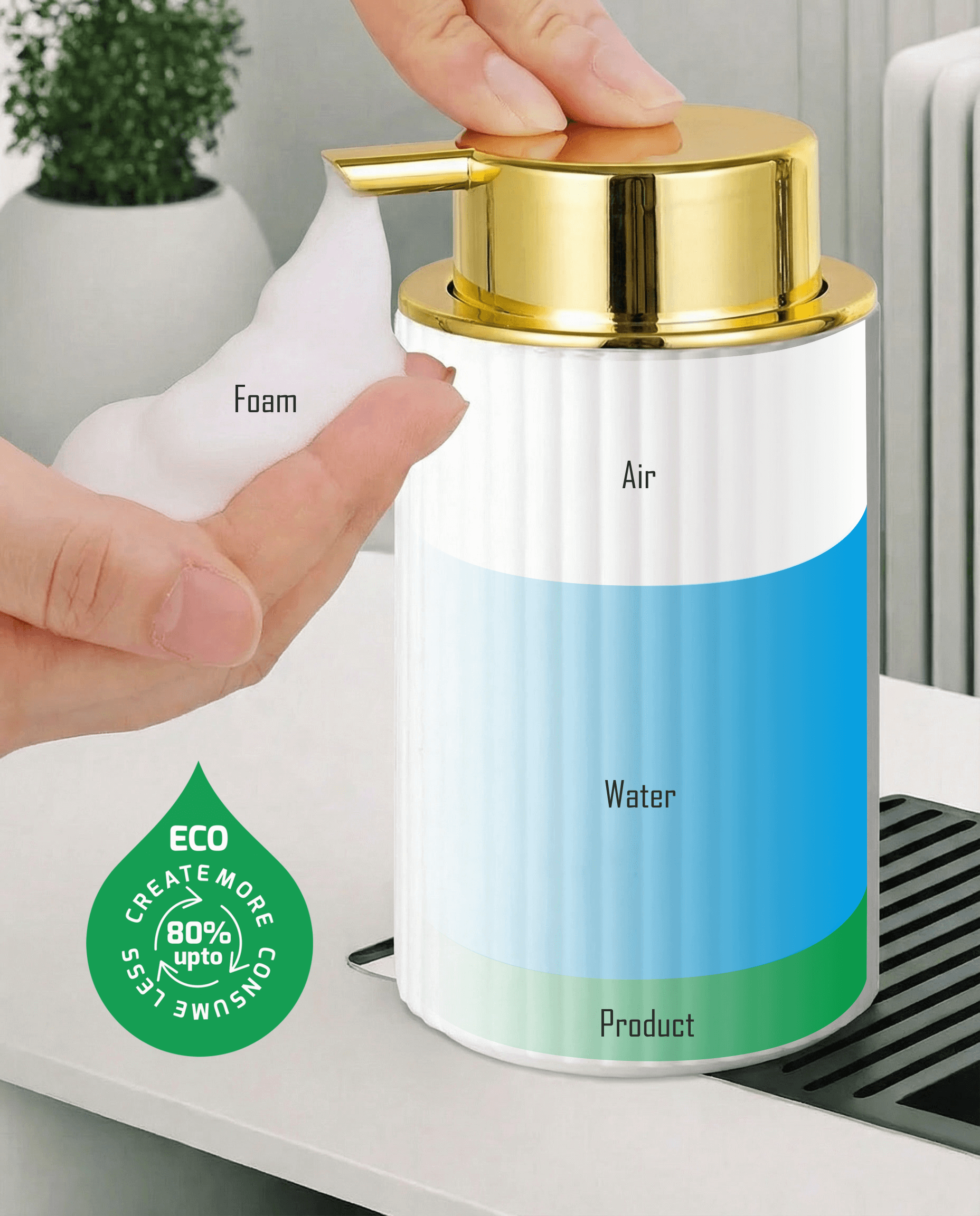 ÖKO säästlik disain võiamldab vältida pesuvahendite üledoseerimist ja vähenda seebi ja vedelikuvajadust kuni 80% – täida dosaator vaid 15% pesugeeliga ja 65% veega, et nautida täiuslikku vahtu! Suur stabiilne dosaatornupp ja stiilne korpus. Kukkumiskindel plastikmaterjal ei tekita teravaid ohtlikke kilde sinu lastele ja lähedastele, nagu rasked portselanist alternatiivid ja sinu valamu vanni ja dušinurga pinnaviimistlused on paremini kaitstud. See on oluliselt turvalisem, kui peaks kogemata maha kukkuma.